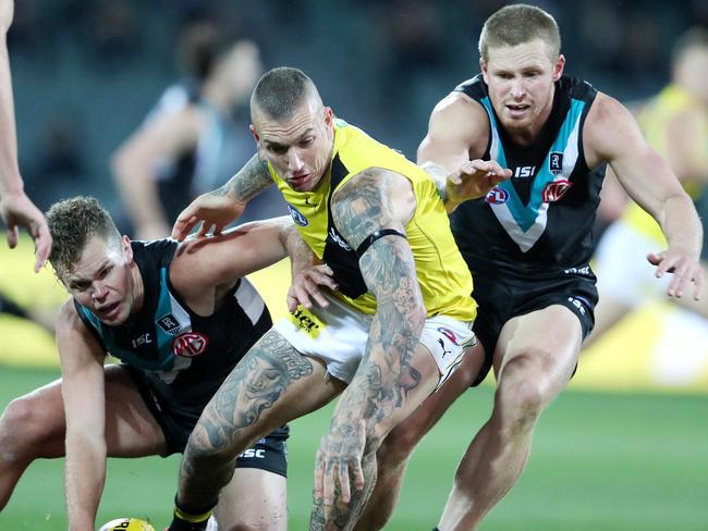 A year ago Port Adelaide would’ve lost this match. When Shaun Burgoyne strolled past the 50 to slot through a running goal we’ve seen many times before, the lead was trimmed to four points.